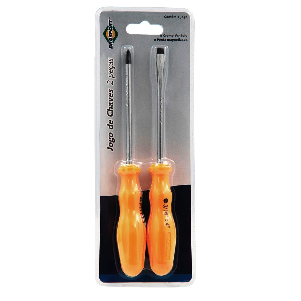 Chave Fenda/Phillips Brasfort - 3/16x4, com 2 Peças - 7279