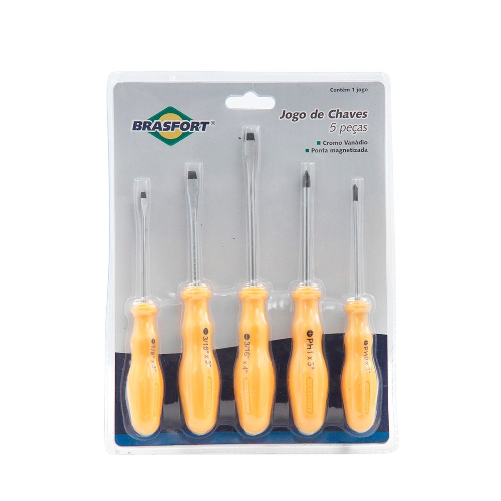 Chave Fenda/Phillips Brasfort Magnética com 05 Peças 8027