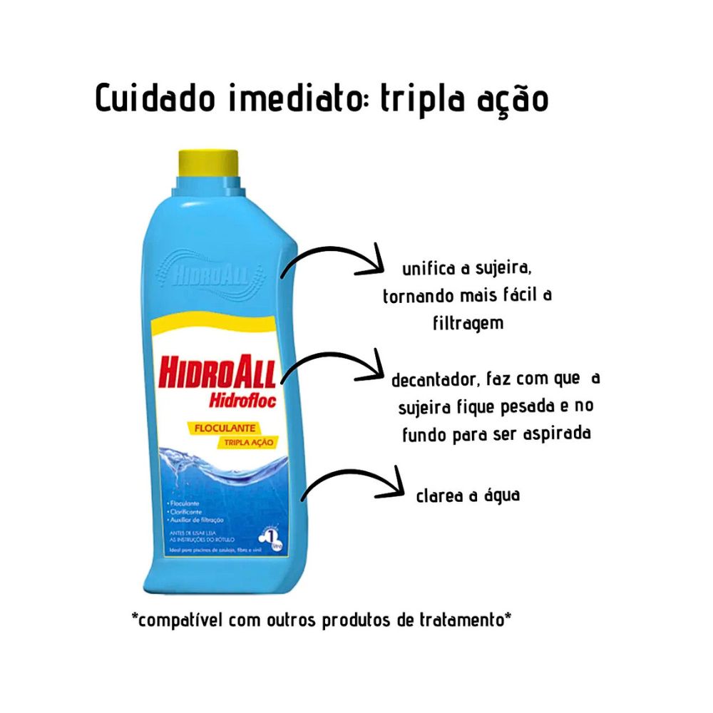 Garanta já seu Clarificante Floculante HidroAll 1 Litro e mantenha sua piscina com água limpa, cristalina e pronta para o lazer o ano todo!