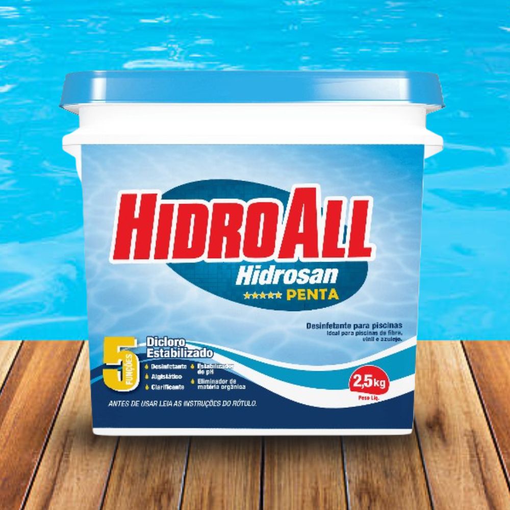 Garanta já seu Cloro Penta HidroAll 2,5Kg e mantenha sua piscina sempre cristalina, protegida e pronta para o lazer com um tratamento completo em uma única aplicação!