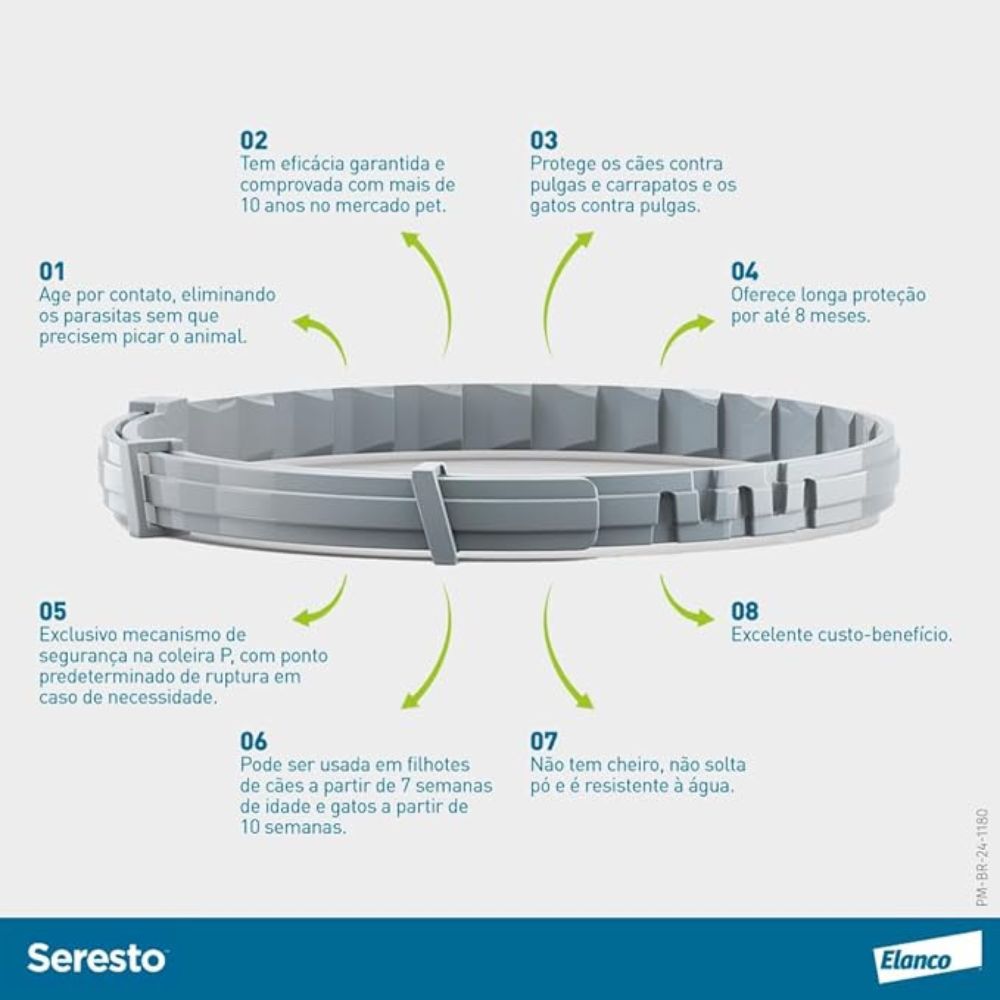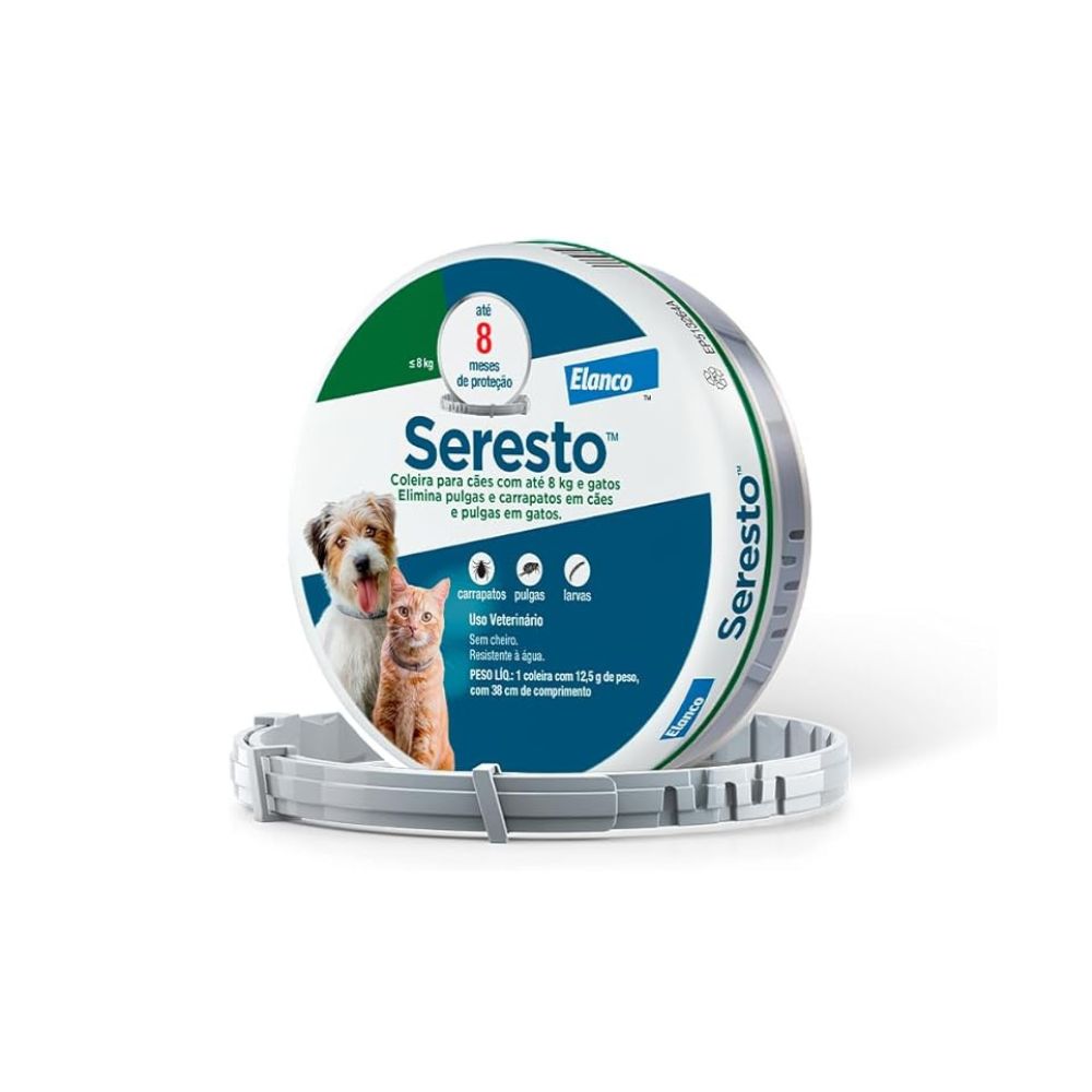 A Coleira Antipulgas e Carrapatos Seresto para Cães Grandes 70cm oferece proteção contínua e eficaz contra parasitas externos, garantindo segurança e conforto para o seu pet. Desenvolvida com tecnologia de liberação gradual, atua de forma constante por até 8 meses, ajudando a eliminar pulgas e carrapatos antes que piquem o animal. Resistente à água, inodora e fácil de colocar, é ideal para cães de grande porte que precisam de um método de prevenção prático, duradouro e confiável.