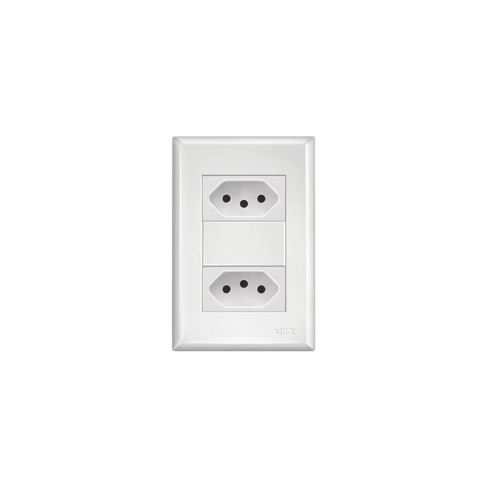 Este produto é composto por uma caixa de embutir 4x2 e uma placa de acabamento que abriga duas tomadas de 20A, garantindo uma conexão segura e eficiente para seus aparelhos eletrônicos. As tomadas são projetadas para suportar altas correntes, tornando-as ideais para equipamentos que demandam maior potência, como ar-condicionados, micro-ondas e outros eletrodomésticos.