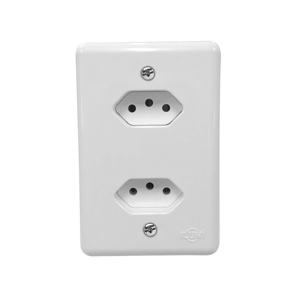 Conjunto Ilumi 4X2 Branco com Placa 2 Tomadas 10A Monobloco 201200