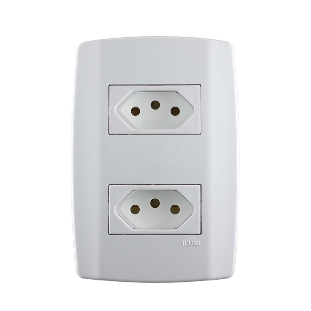 Conjunto Ilumi Slim 4X2 Branco com Placa 2 Tomada 10A 80120