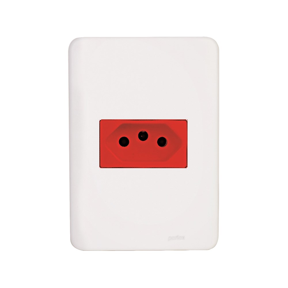 Conjunto Perlex Aros 4X2 Branco com Placa 1 Tomada 10A Vermelha 7311 7311VM