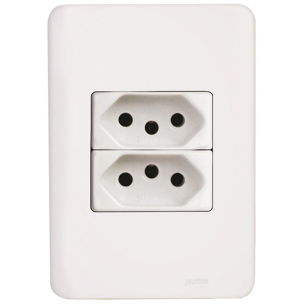 Conjunto Perlex Aros 4X2 Branco com Placa 2 Tomadas 10A 7311/11