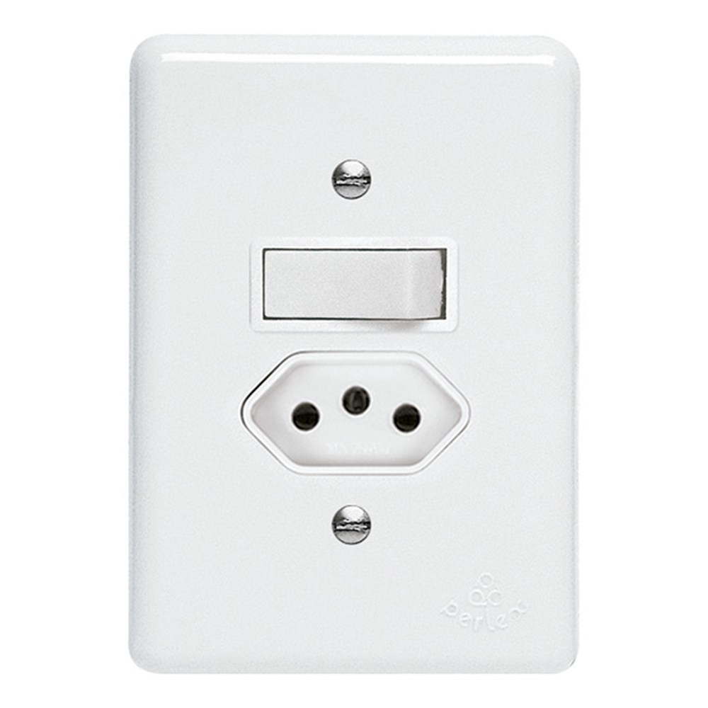 Conjunto Perlex - Branca com Placa (1 Simples + Tomada 10A) - 2381/11