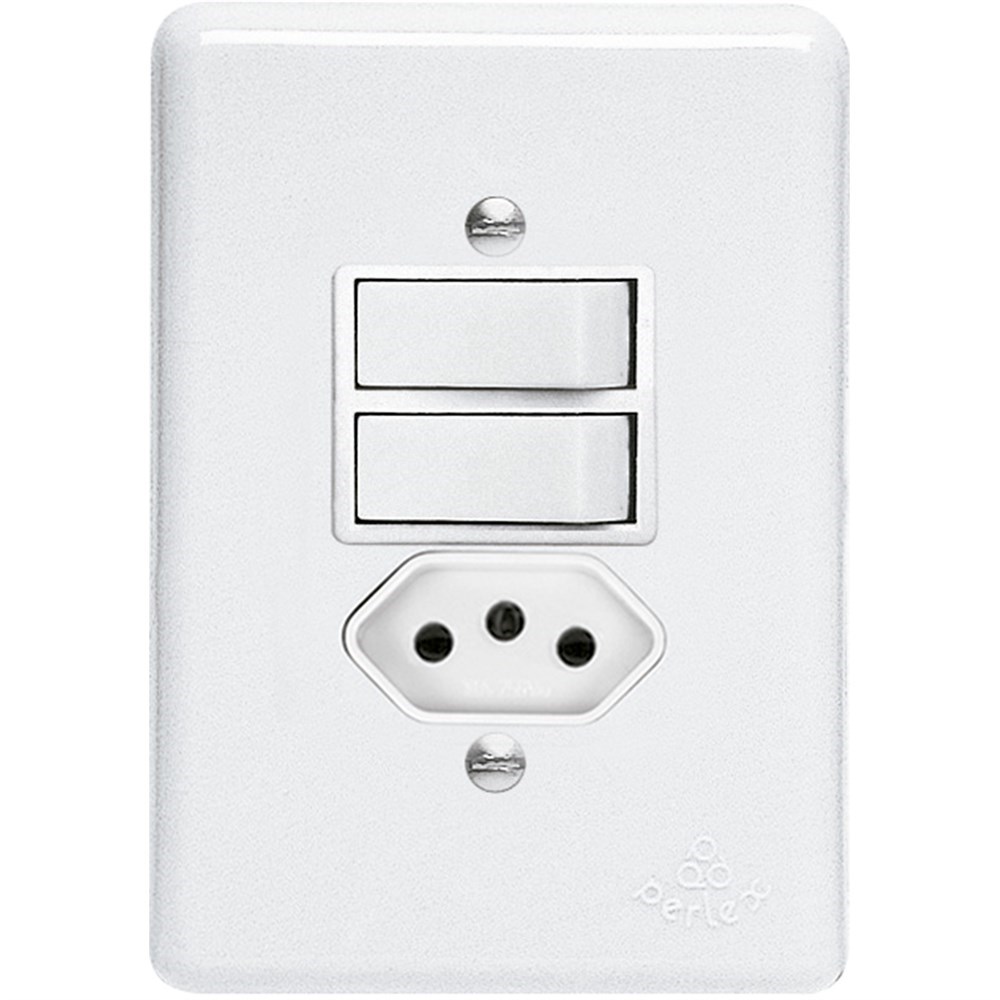 Conjunto Perlex - Branca com Placa (2 Paralelos + Tomada 10A) - 2382P/11