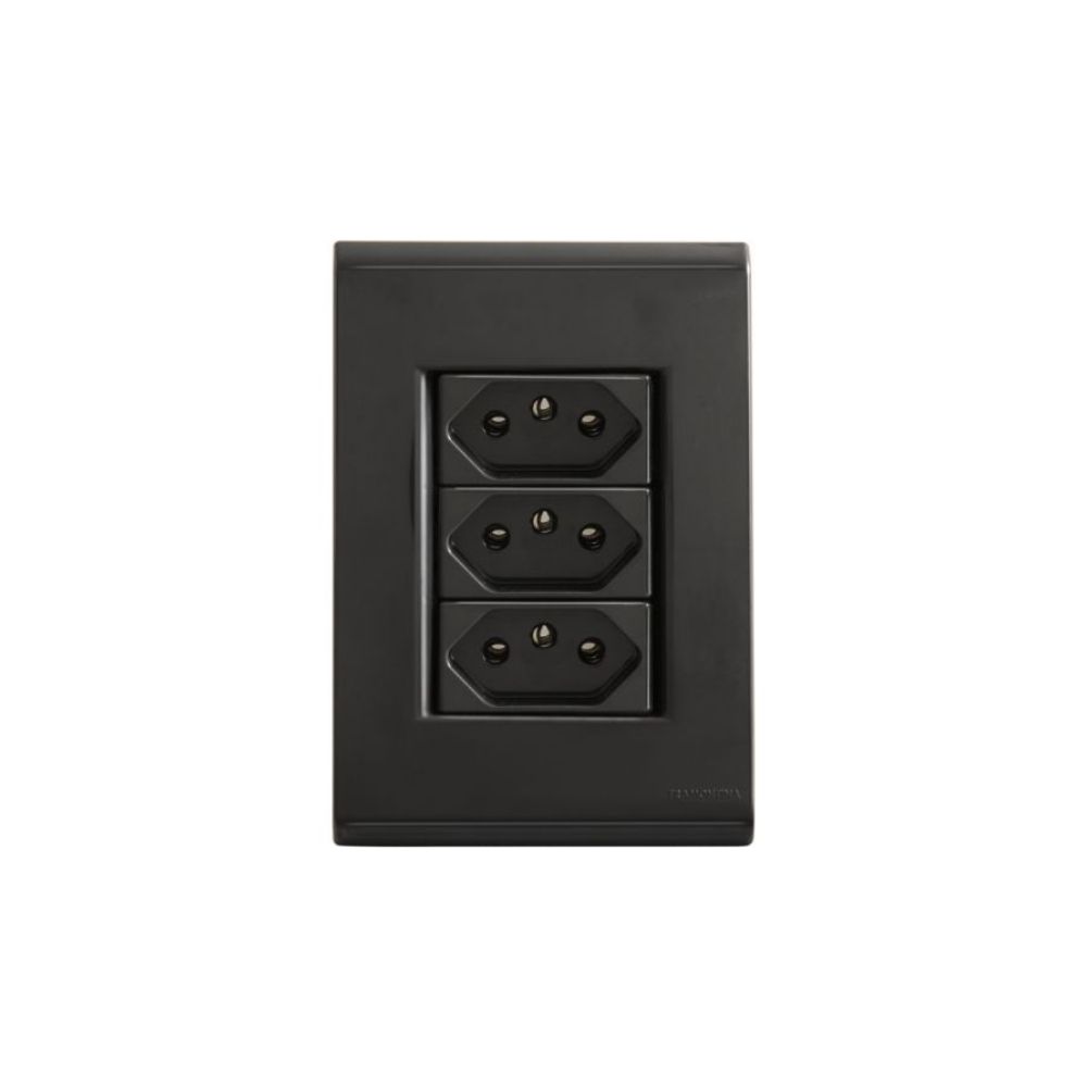 CONJUNTO TRAMONTINA LIZ 4X2 GRAFITE COM PLACA (3 TOMADAS 10A) 57173076