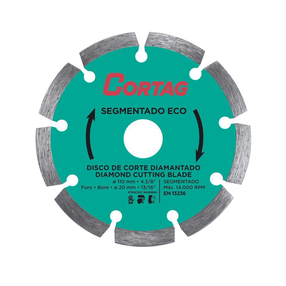 O Disco Diamantado Cortag - Eco Segmentado 110mm é a escolha ideal para profissionais que buscam qualidade, eficiência e precisão em seus trabalhos de corte. Invista em uma ferramenta de alto desempenho e garanta resultados superiores em suas aplicações.