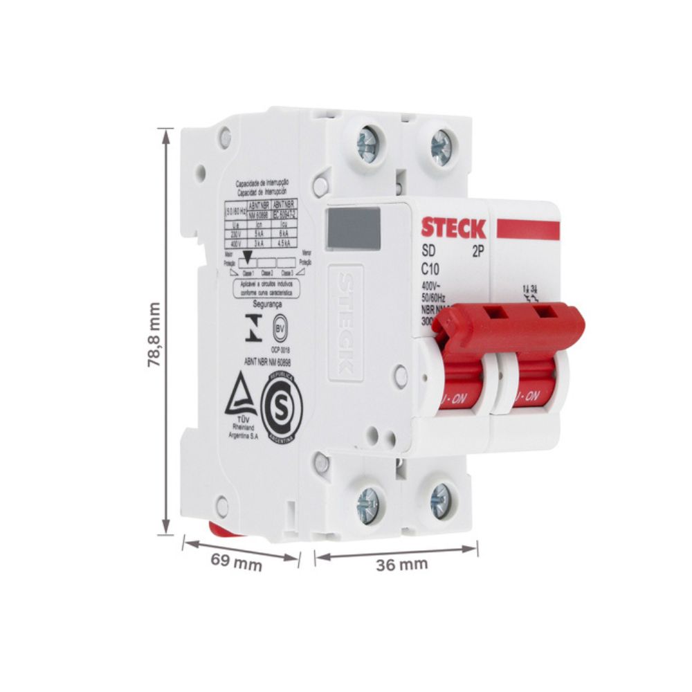 Disjuntor Steck Din Bipolar 10A Sd62 C Sdd62c10