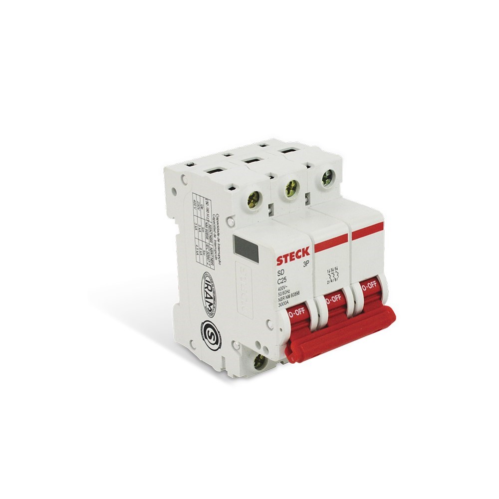 Disjuntor Steck DIN Tripolar - 70A SD63 C - SD63C70