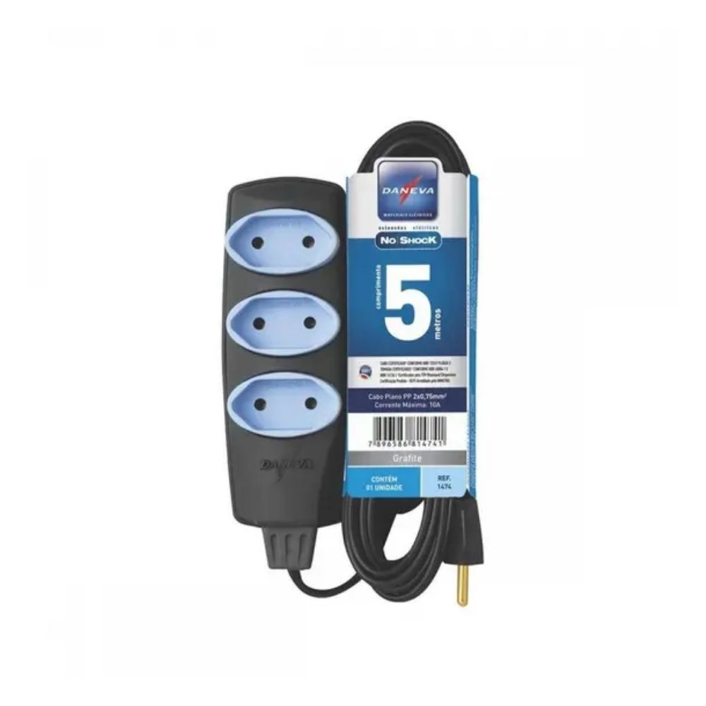 Extensão Daneva - Noshock PP Grafite 10A 5m | DN1719