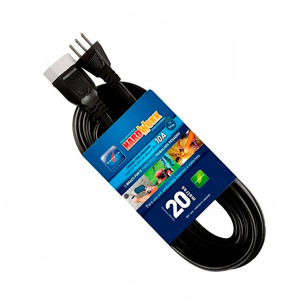 Extensão Daneva Prolongador Macho Fêmea Hw 2 Polos 20M Preta 10A DN1530