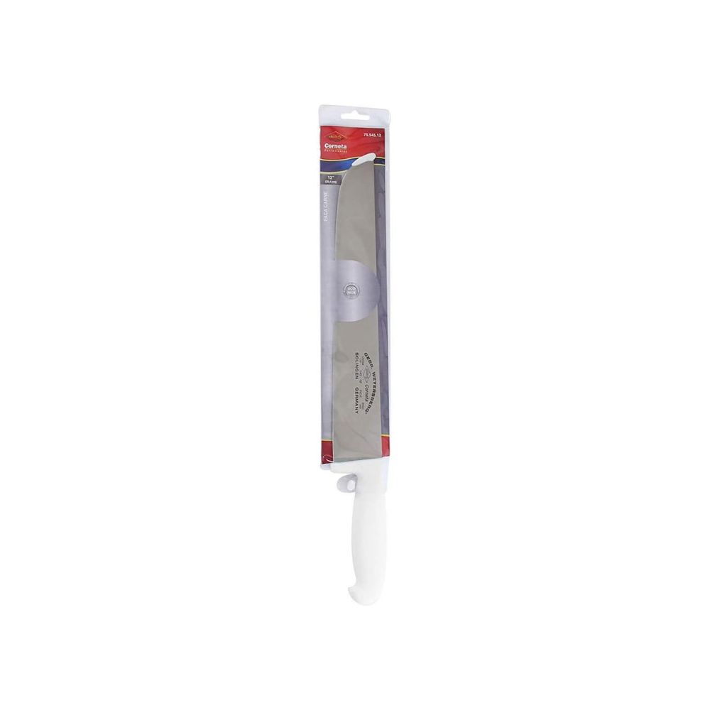 A Faca para Carne Corneta 12" é a escolha certa para cortes grandes e precisos. Com uma lâmina longa em aço inox e cabo branco no modelo tradicional, ela garante desempenho profissional em churrascos, cozinhas industriais e residências que valorizam eficiência. Robusta e confiável, é ideal para quem exige qualidade nos preparos mais exigentes.