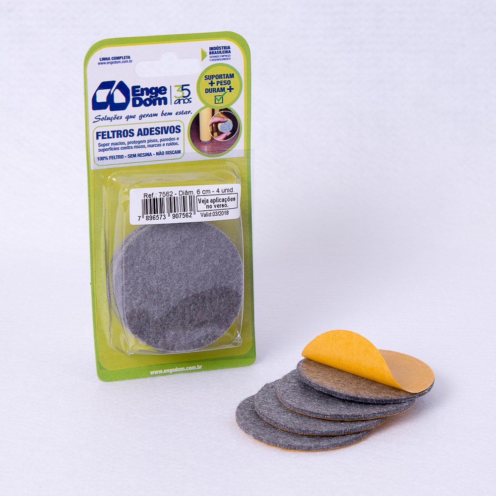 Feltro AA Engedom Cinza Redondo 6.0cm 4 Peças 7562