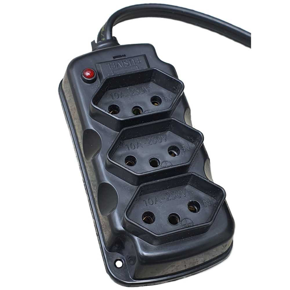 Filtro Linha Plástico Asantos com Fusível 3 Tomadas 2 Polo + Terra 5M com Suporte 2129