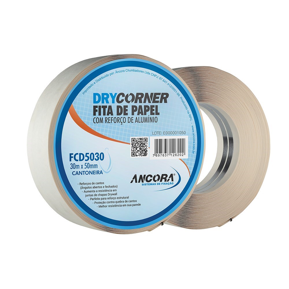 A Fita Drywall Ancora - De Canto com Reforço Metálico 50mmx30m é a escolha perfeita para profissionais da construção civil e para quem busca qualidade e praticidade em seus projetos de drywall. Garanta já a sua e tenha um acabamento de alta qualidade em suas paredes!