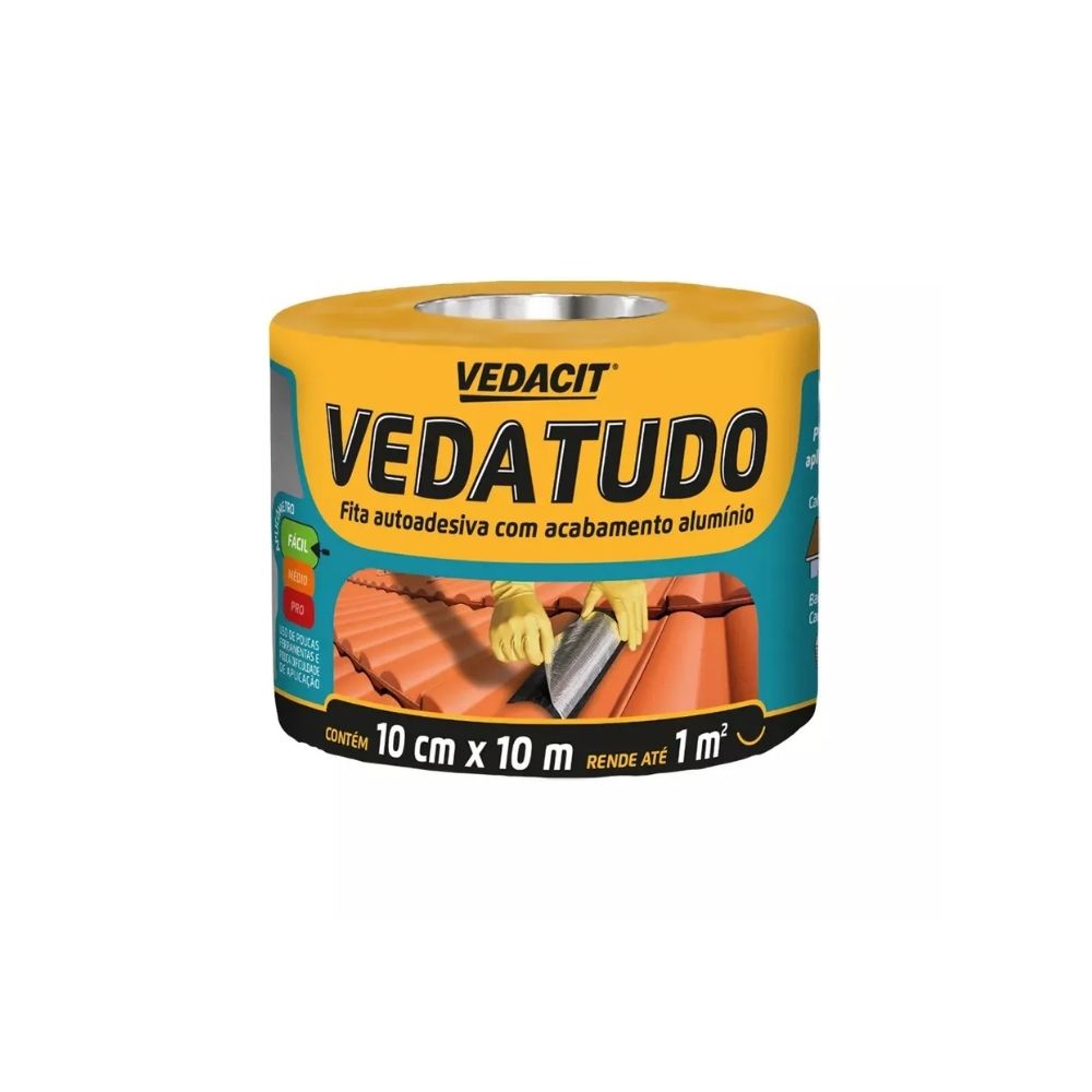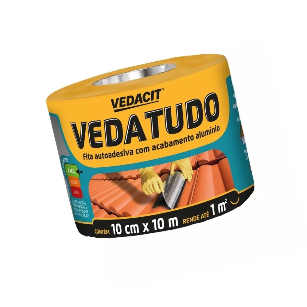 A Fita Manta Veda Tudo Vedacit 10cm×10m é uma fita autoadesiva versátil e eficiente, indicada para vedações rápidas, reparos e impermeabilizações em pequenas áreas. Produzida com asfalto modificado e revestida com alumínio, oferece alta aderência e resistência ao sol, chuva e variações de temperatura. Ideal para uso em telhas, calhas, rufos, dutos e superfícies metálicas, proporciona impermeabilização imediata, sem necessidade de maçarico ou ferramentas especiais.