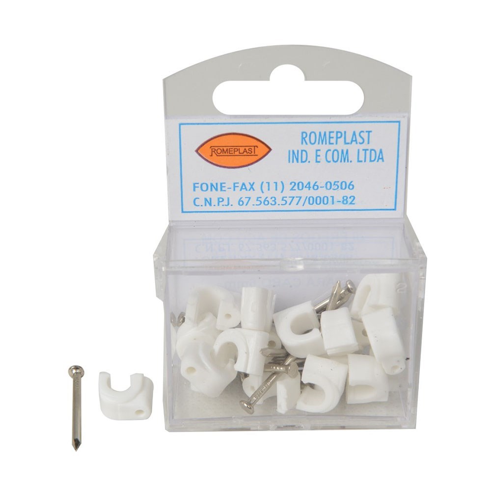 Grampo Fixa Fio Romeplast 06mm Branco com 20 Peças 7896173400050
