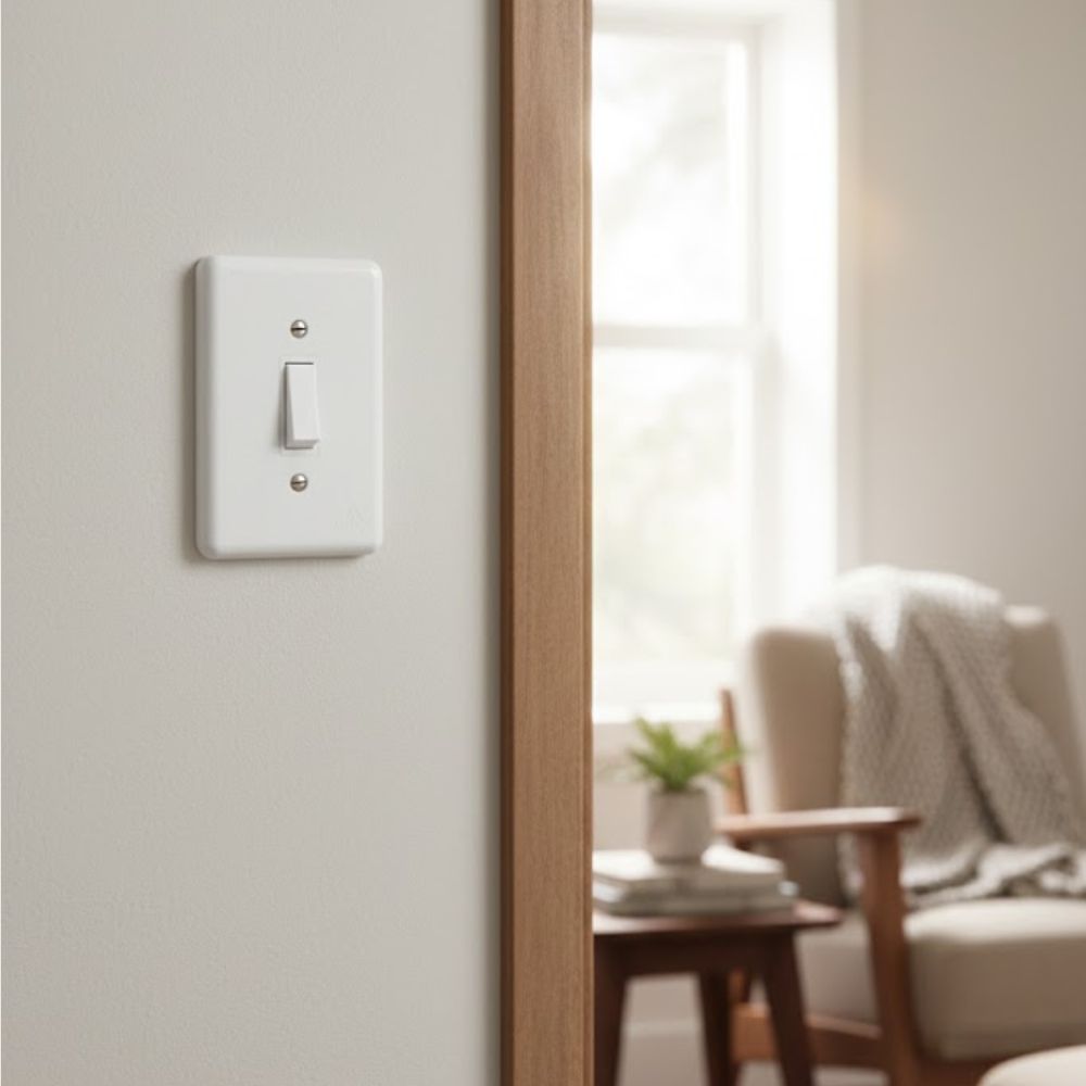 - Tipo de Interruptor: Simples – Controla um único circuito de iluminação, perfeito para pontos de luz únicos.