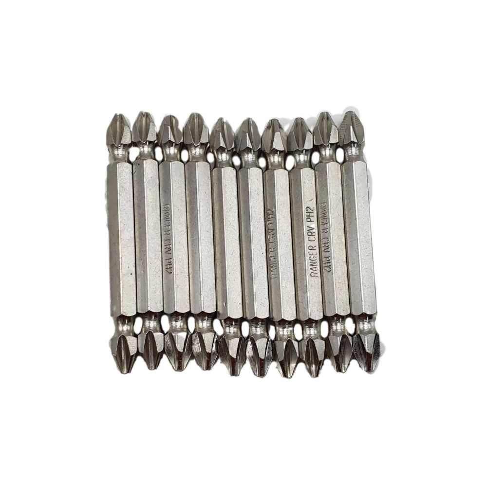 O Jogo de Bits Phillips Ranger PH2 Ponteiras Dupla CRV 65mm é ideal para quem busca desempenho, durabilidade e praticidade em trabalhos de fixação e desmontagem. Fabricadas em aço cromo-vanádio (CRV), as ponteiras oferecem alta resistência ao desgaste e excelente torque, garantindo encaixe preciso em parafusos Phillips PH2. Com 65mm de comprimento e ponta dupla, proporcionam maior versatilidade e economia de tempo na troca de bits. Indicado para uso profissional e doméstico em marcenarias, oficinas, instalações e manutenção em geral.