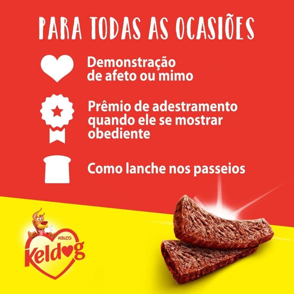 Garanta já o Keldog Bifinho Sabor Churrasco e ofereça ao seu cão um petisco saboroso, macio e perfeito para o dia a dia!