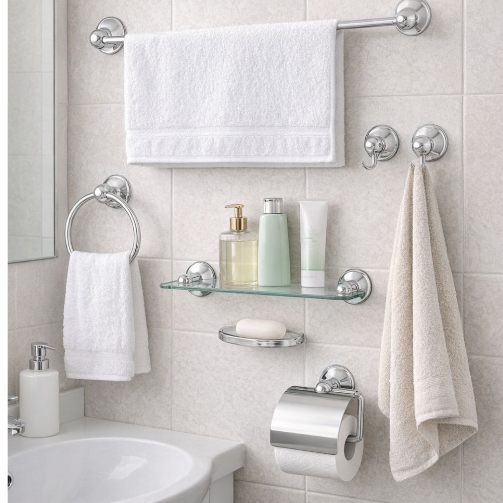 Este conjunto inclui 7 peças essenciais para o banheiro, como porta-toalhas, porta-papel higiênico, cabide, entre outros, garantindo que você tenha tudo o que precisa ao alcance das mãos. Feito com materiais de alta qualidade, o cromado cristal confere durabilidade e resistência aos acessórios, mantendo-os bonitos por mais tempo.