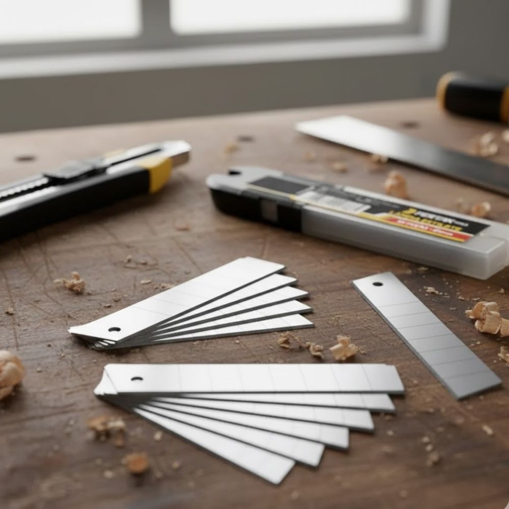 1. Conjunto com 10 lâminas estilete largas.