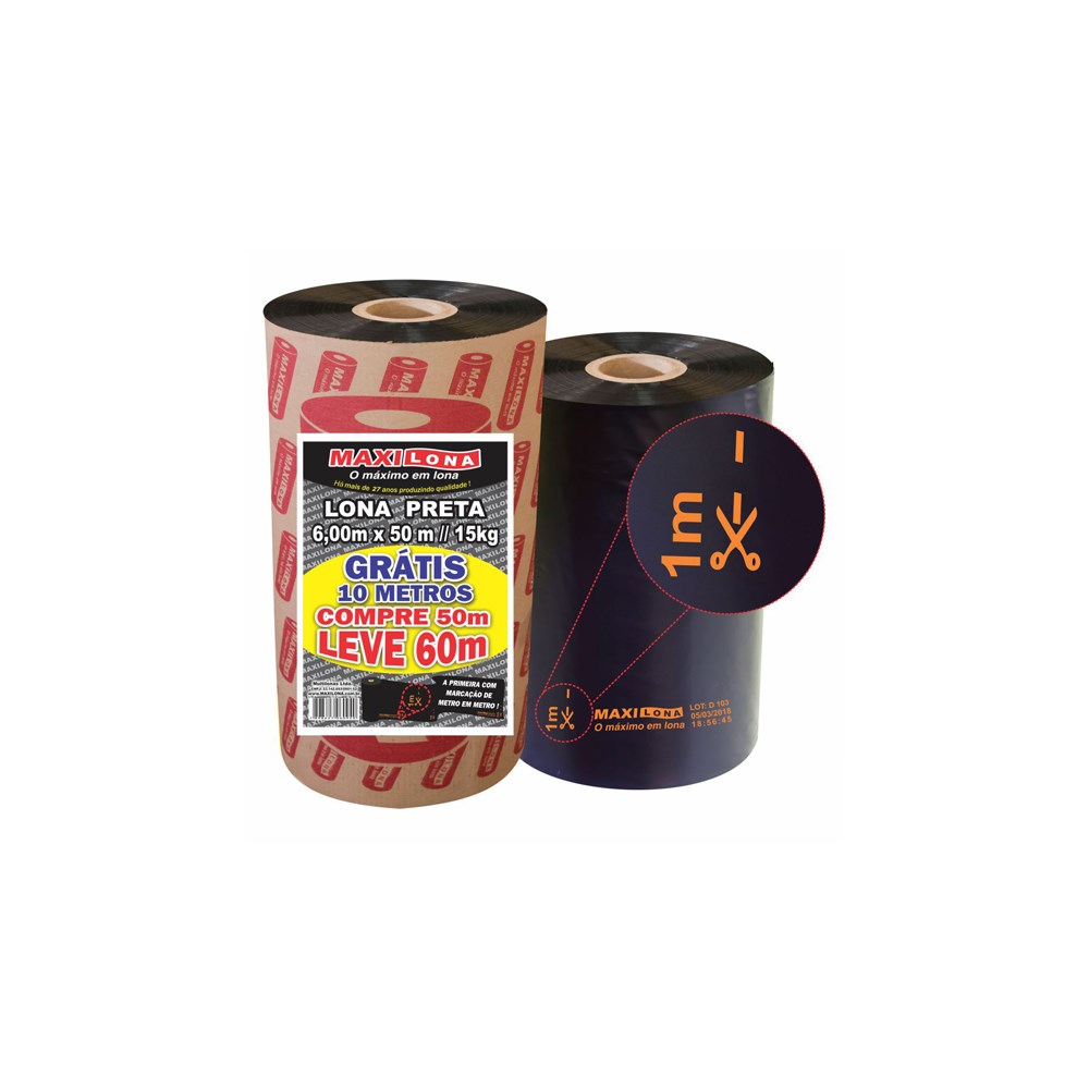 Lona Plástica Maxilona Preta Reciclada 6X 50M+10M 15KG 70 Micras 35