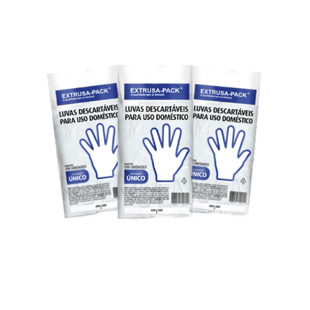 Luva Descartável Extrusa - Polietileno com 100 Peças