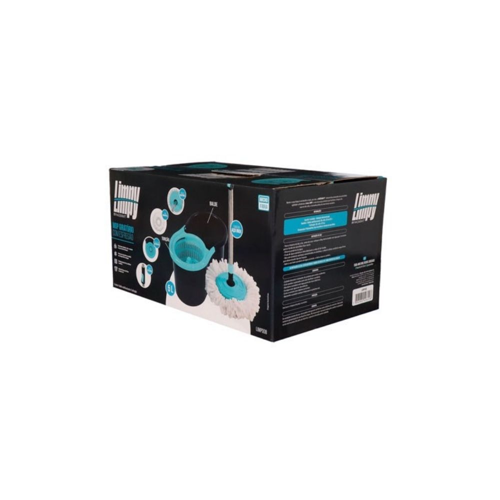 - Material: Plástico resistente (balde), microfibra (refil) e aço inox (cabo)
