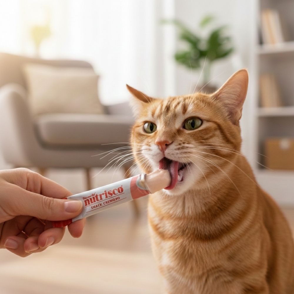 Garanta já o Snack Cremoso Nutrisco Atum e Camarão e proporcione ao seu gato uma explosão de sabor com textura irresistível!