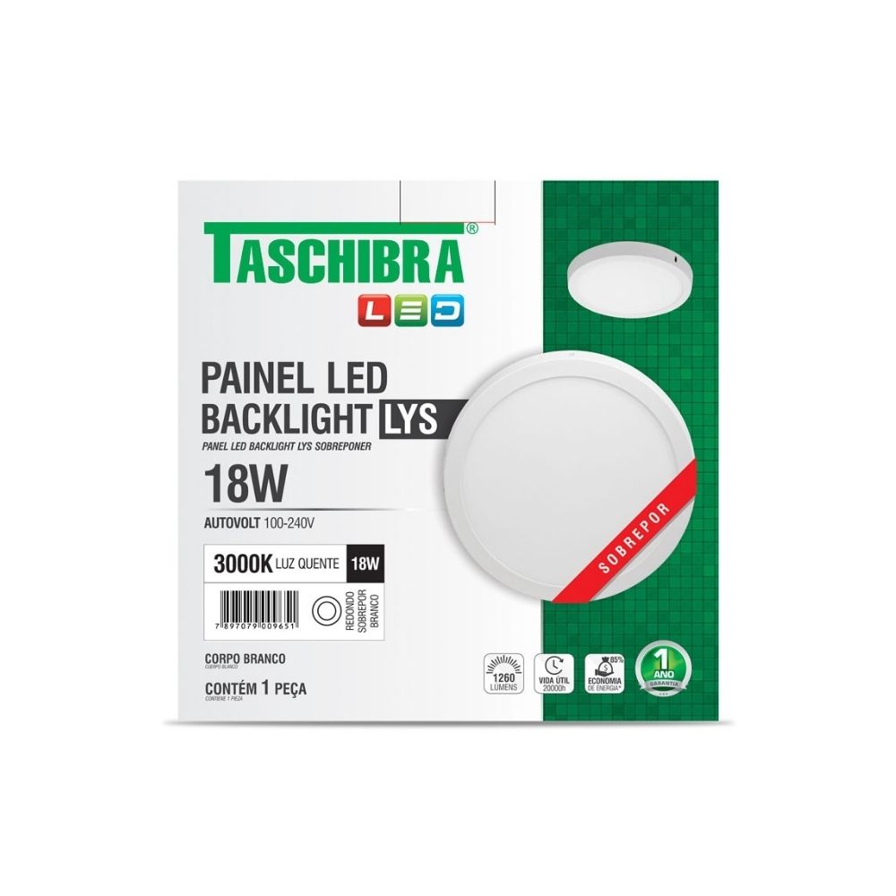 O Painel LED 18W LYS Taschibra, com 21 cm de diâmetro e luz amarela (3000K), é ideal para quem busca uma iluminação suave e decorativa. Com design discreto e moderno, é perfeito para compor ambientes acolhedores e elegantes com eficiência energética.