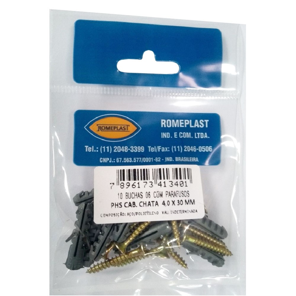 Parafuso Jomarfix Romeplast Chata com Bucha 06 10 Peças