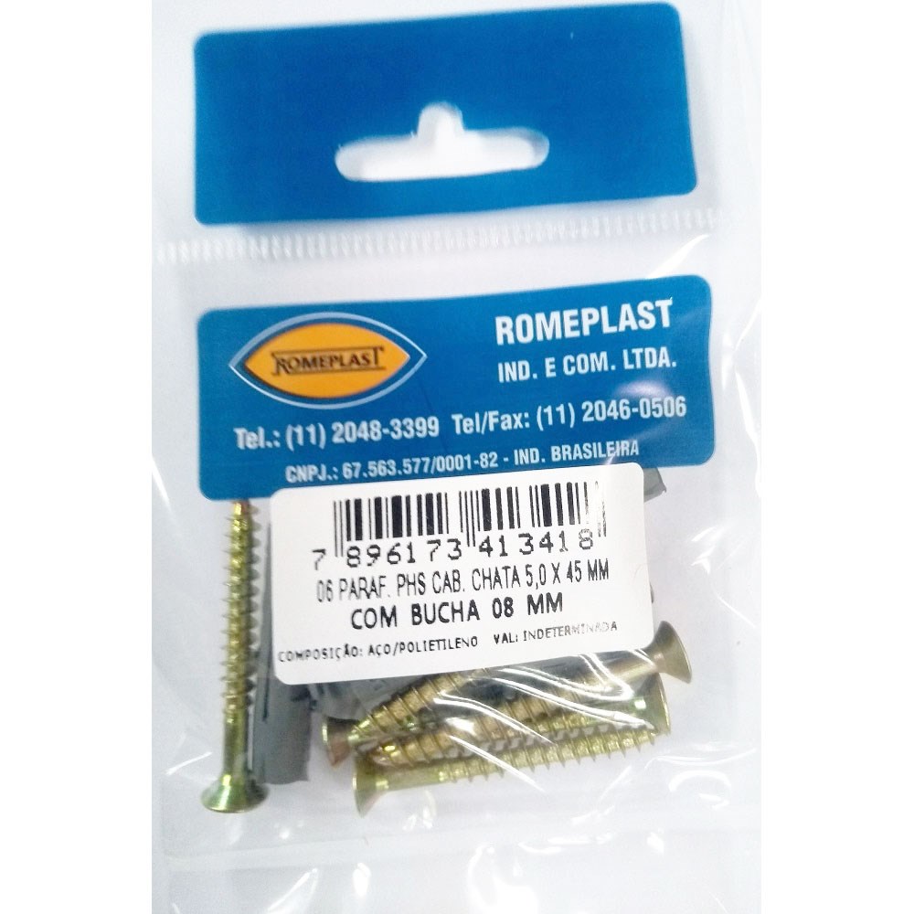 Parafuso Jomarfix Romeplast Chata com Bucha 08 - 6 Peças