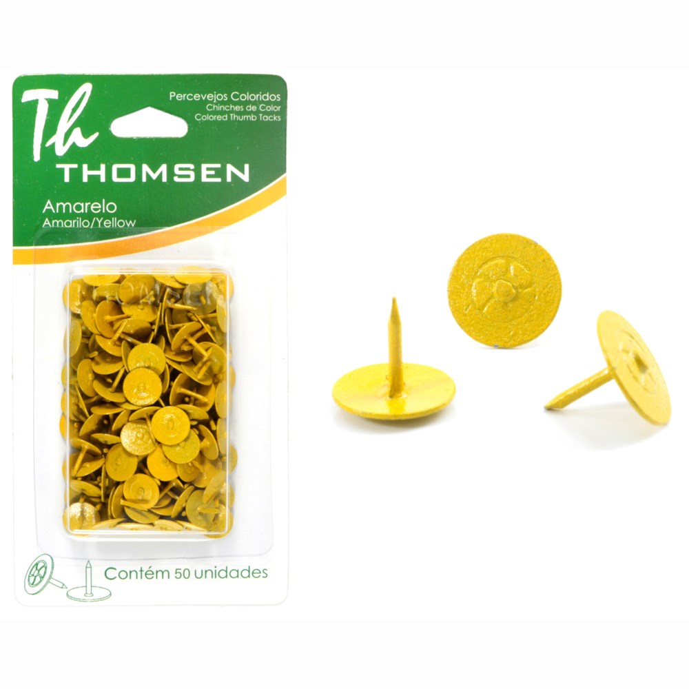 Em resumo, o Percevejo Thomsen - Amarelo Cartela com 50 Peças - PC-022 é um produto que une praticidade, durabilidade e estilo, sendo uma adição valiosa ao seu kit de escritório ou material escolar. Não perca a oportunidade de otimizar sua organização e aumentar sua produtividade com este item indispensável!