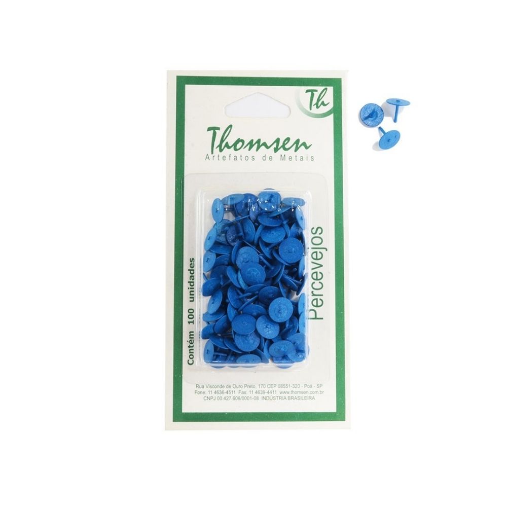 Percevejo Thomsen - Azul Cartela com 100 Peças | PC-034