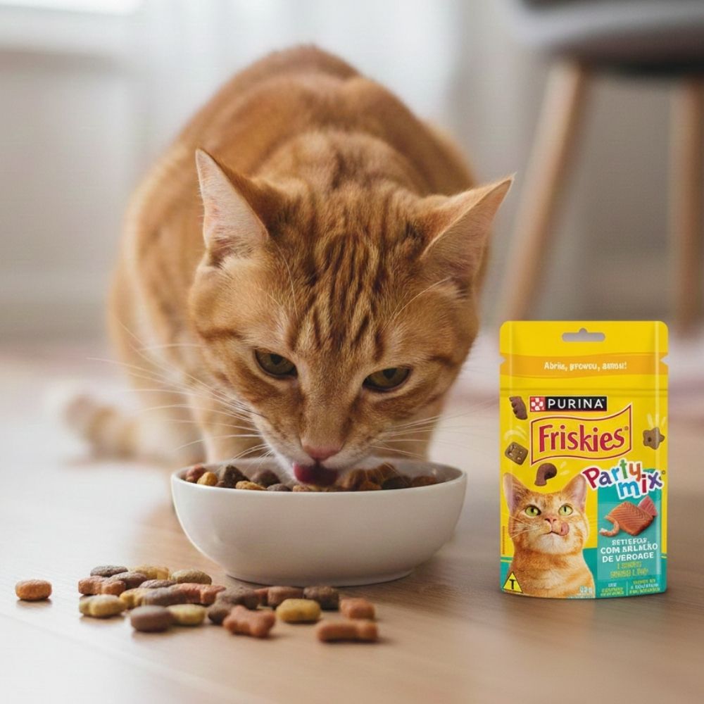 Garanta já o Petisco Friskies Salmão e proporcione ao seu gato uma explosão de sabor irresistível a cada crocante!