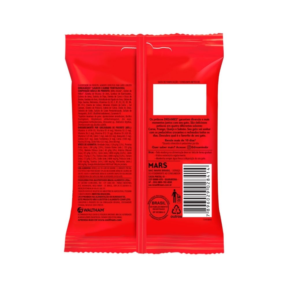 Garanta já o Dreamies Sabor Carne e proporcione ao seu gato um petisco crocante, irresistível e perfeito para todos os momentos!