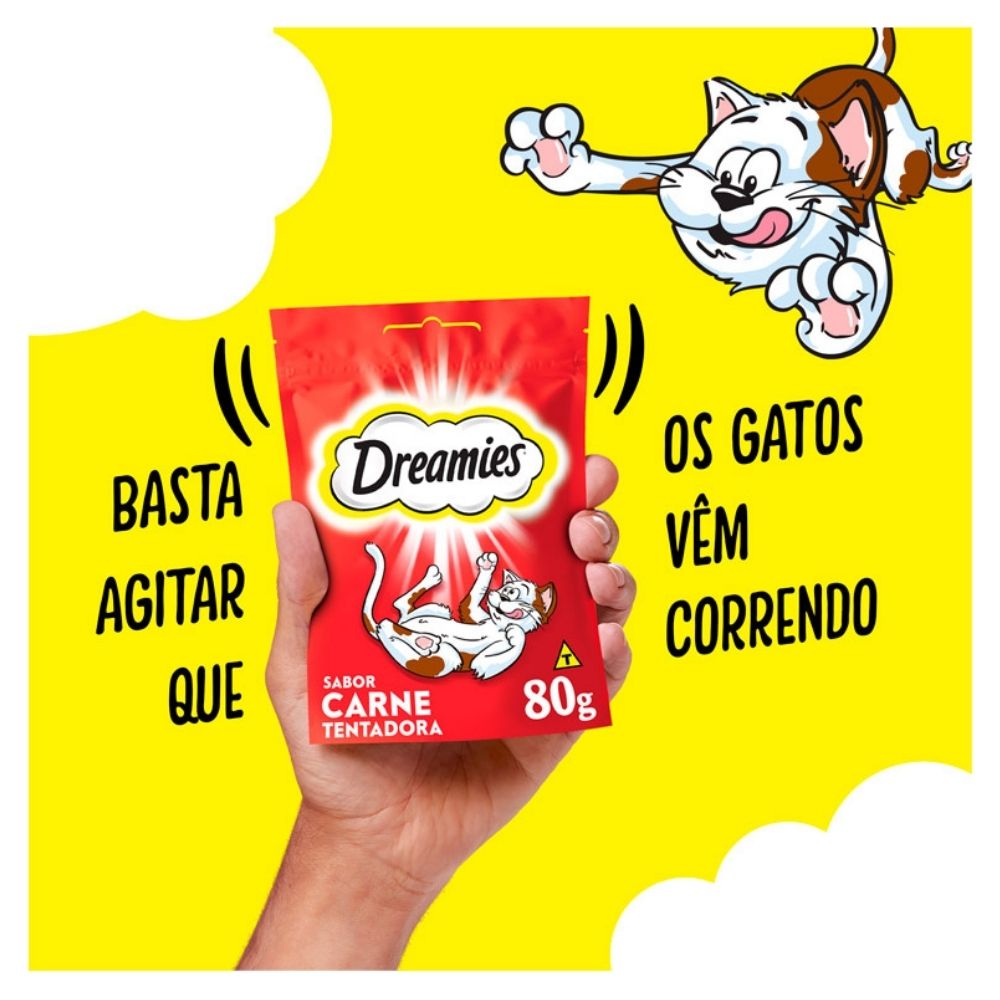 Garanta já o Dreamies Sabor Carne 80g e ofereça ao seu gato uma explosão de crocância e sabor em cada mordida!