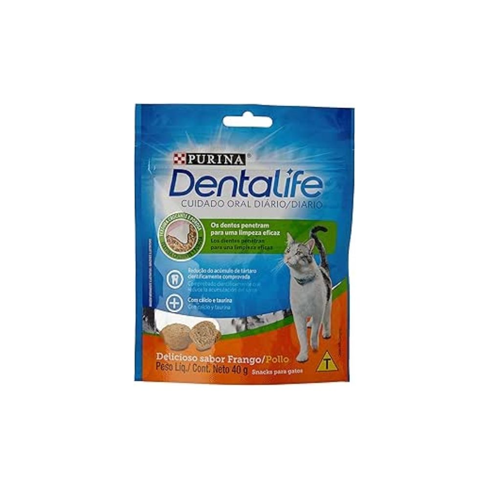 Garanta já o Dentalife Sabor Frango 40g e proporcione ao seu gato um petisco saboroso que também cuida da saúde bucal!