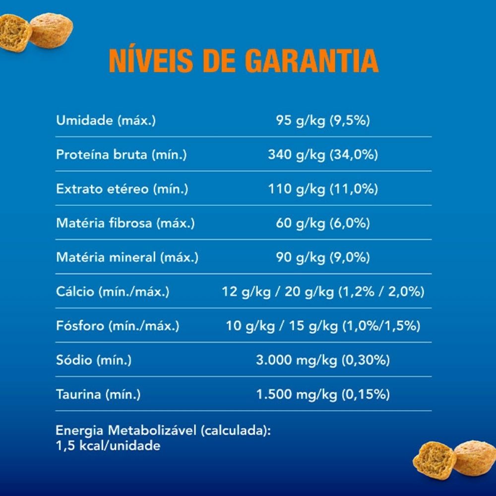 Ofereça diariamente em quantidade adequada ao peso do gato, conforme orientação da embalagem. Após aberto, mantenha a embalagem bem fechada e armazene em local fresco e seco. Disponibilize sempre água fresca ao felino.