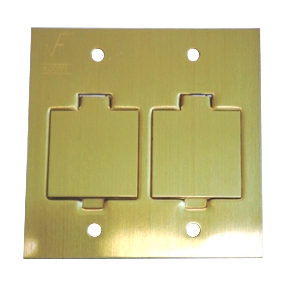 Placa Piso Latão 4x4 Tomada Fone - "Com 2 Tampa Unha" - PL442TB