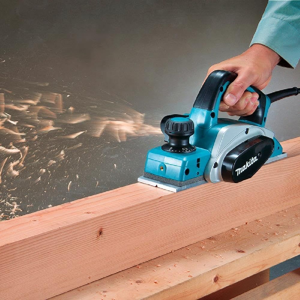A Plaina Makita 220V 620W KP0800-220V é a ferramenta ideal para profissionais que buscam precisão e eficiência no desbaste e acabamento de superfícies de madeira. Com sua potência de 620W e alta velocidade de 17000 rotações por minuto, esta plaina oferece um desempenho superior, garantindo resultados impecáveis em cada projeto. Seu design robusto e a funcionalidade de extração de pó proporcionam um ambiente de trabalho mais limpo e seguro, tornando-a uma escolha excelente para marcenarias, carpintarias e projetos de reforma.