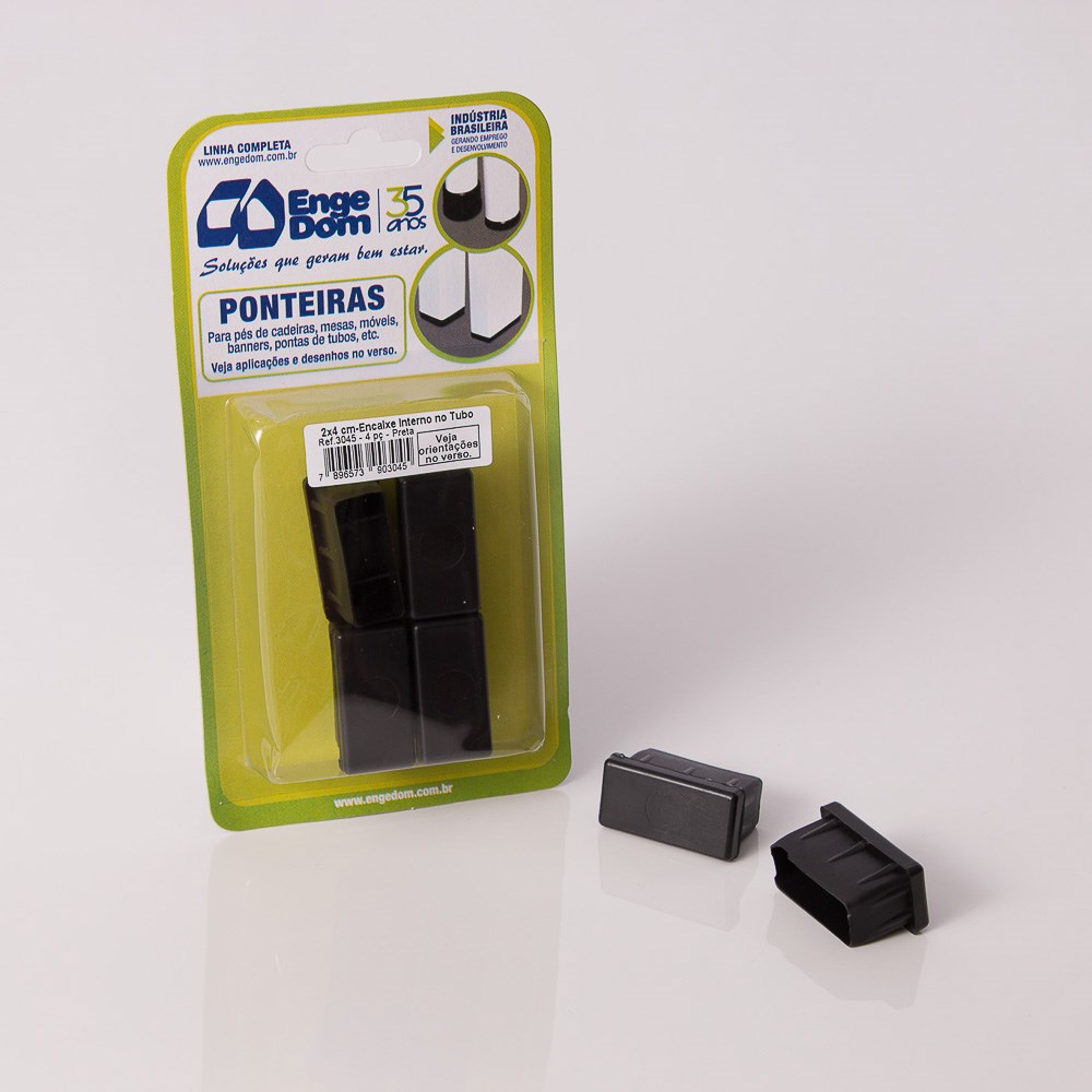 Ponteira Cadeira Engedom 20x40 Interno Preta 4 Peças Retangular 3045
