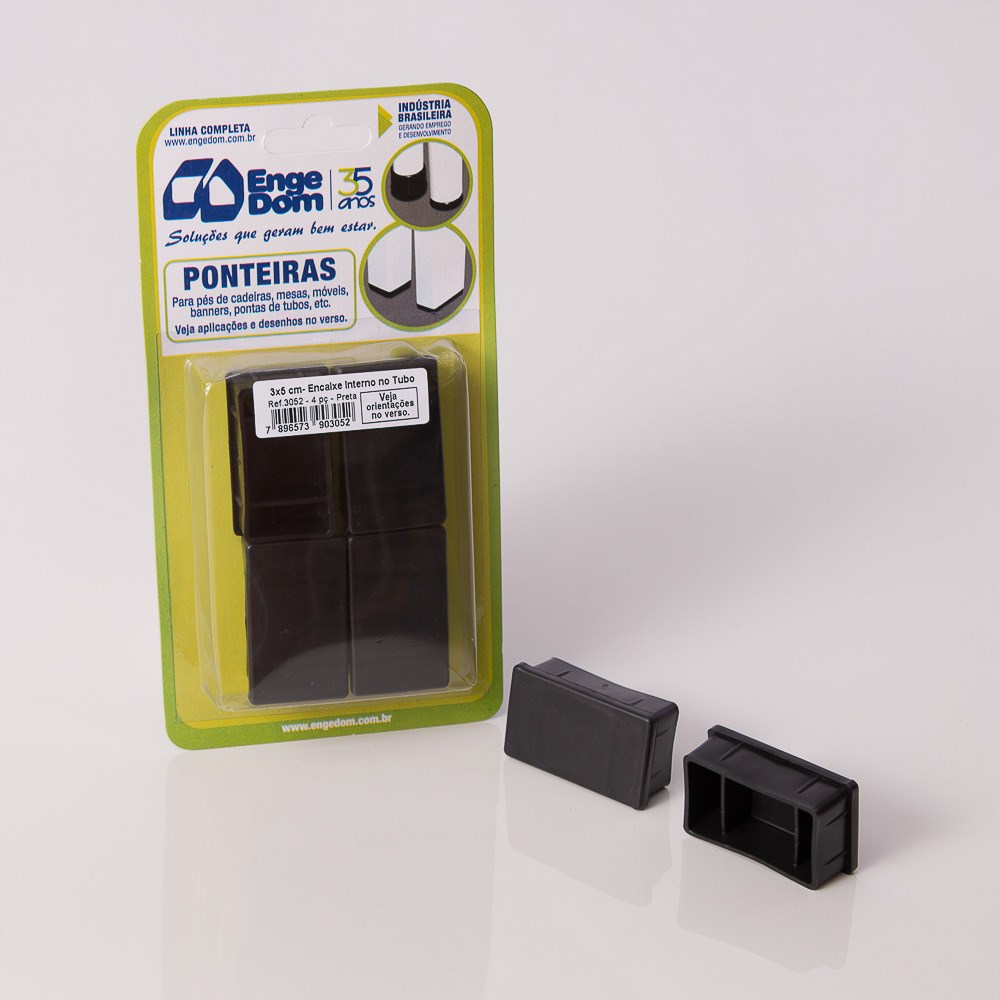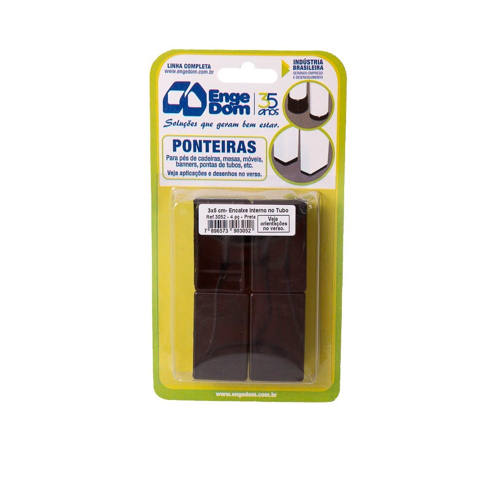 Ponteira Cadeira Engedom 30x50 Interno Preta 4 Peças Retangular 3052