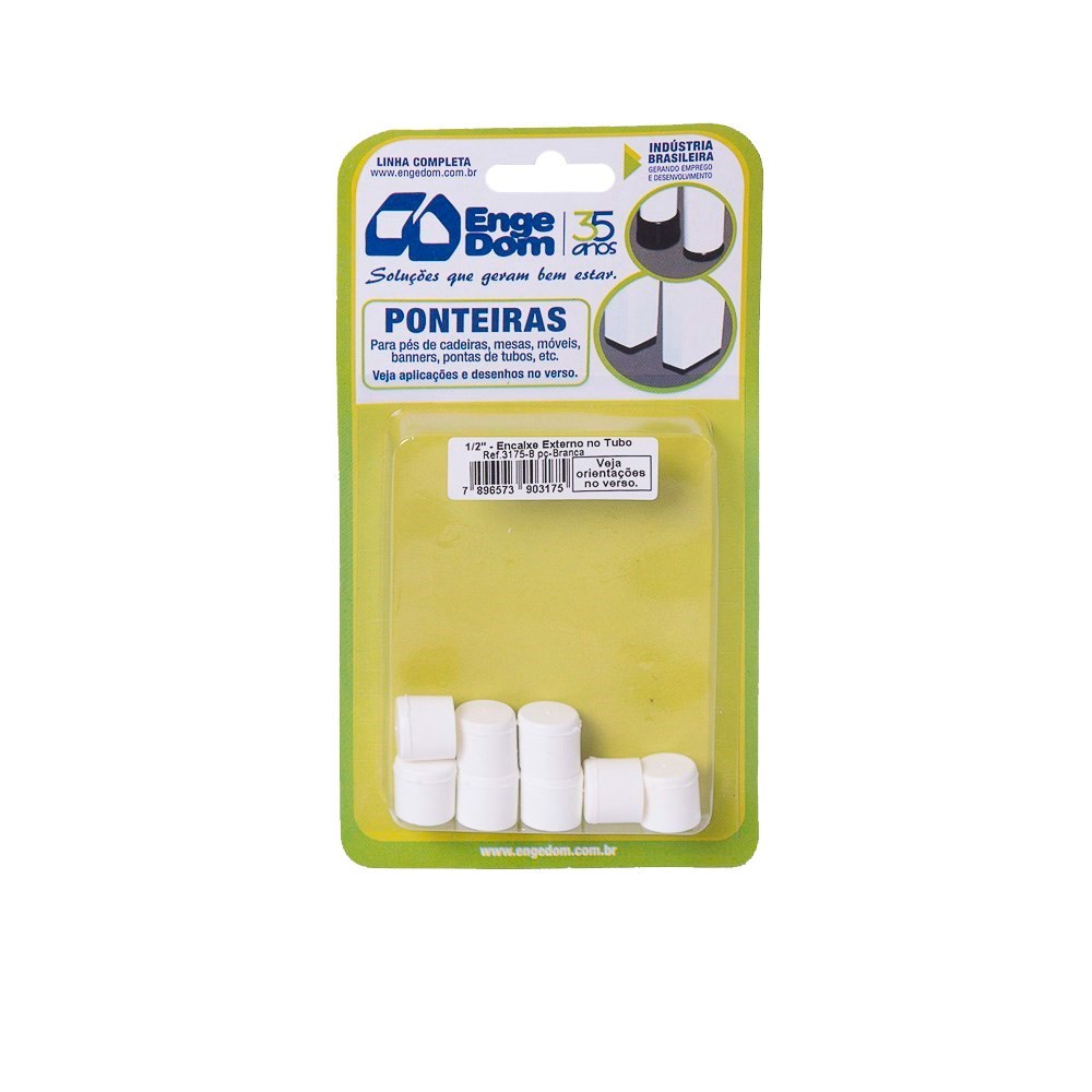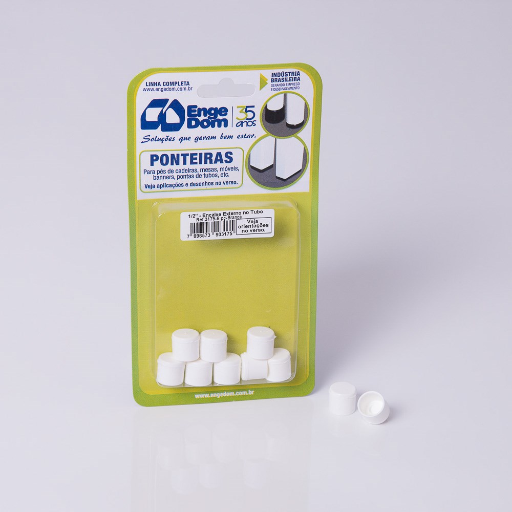 Ponteira Cadeira Engedom - "Pe" Externa Branca (A) 1/2" 8 Peças Redondo - 3175