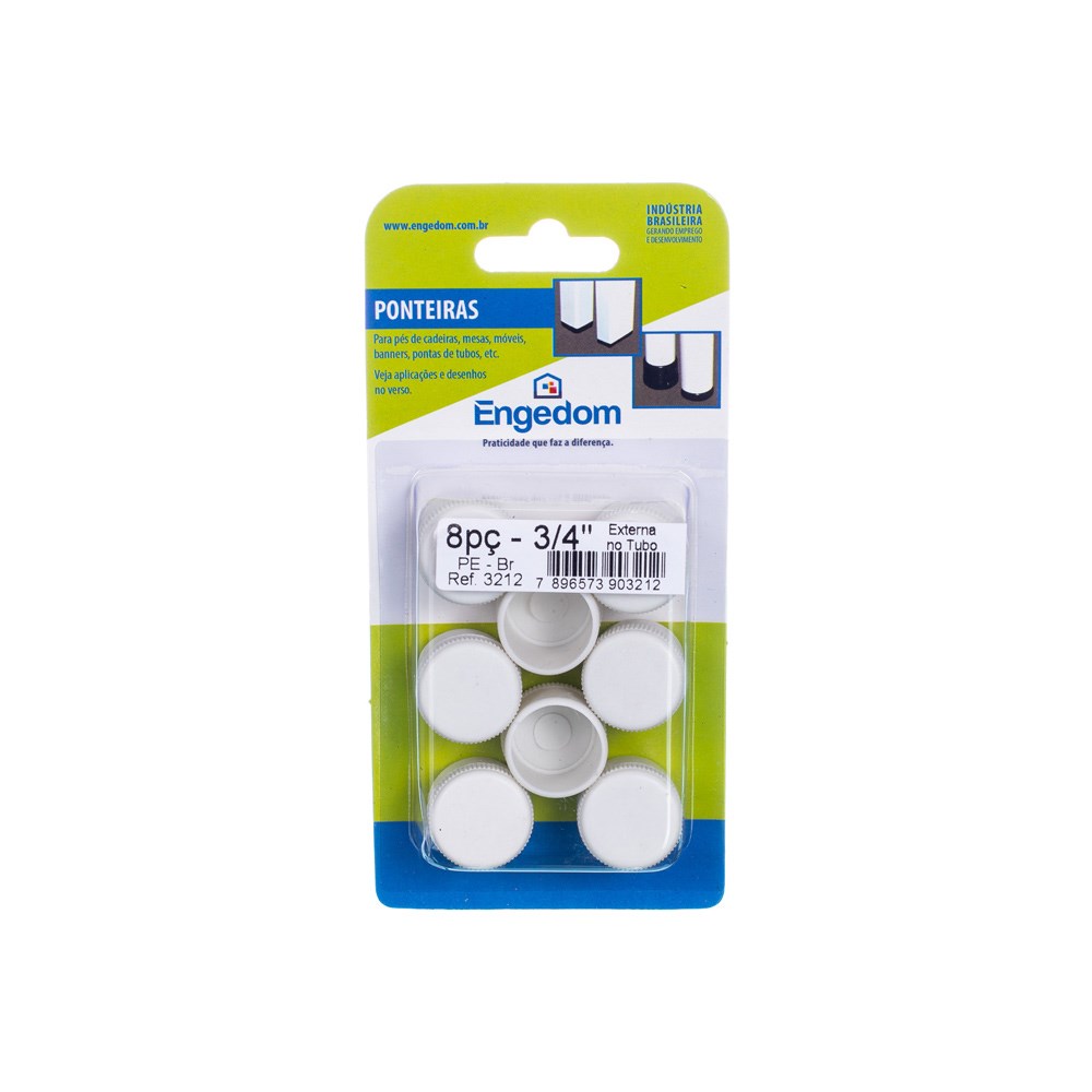 Ponteira Cadeira Engedom "Pe" Externo Branca (C) 3/4" 8 Peças Redondo 3212