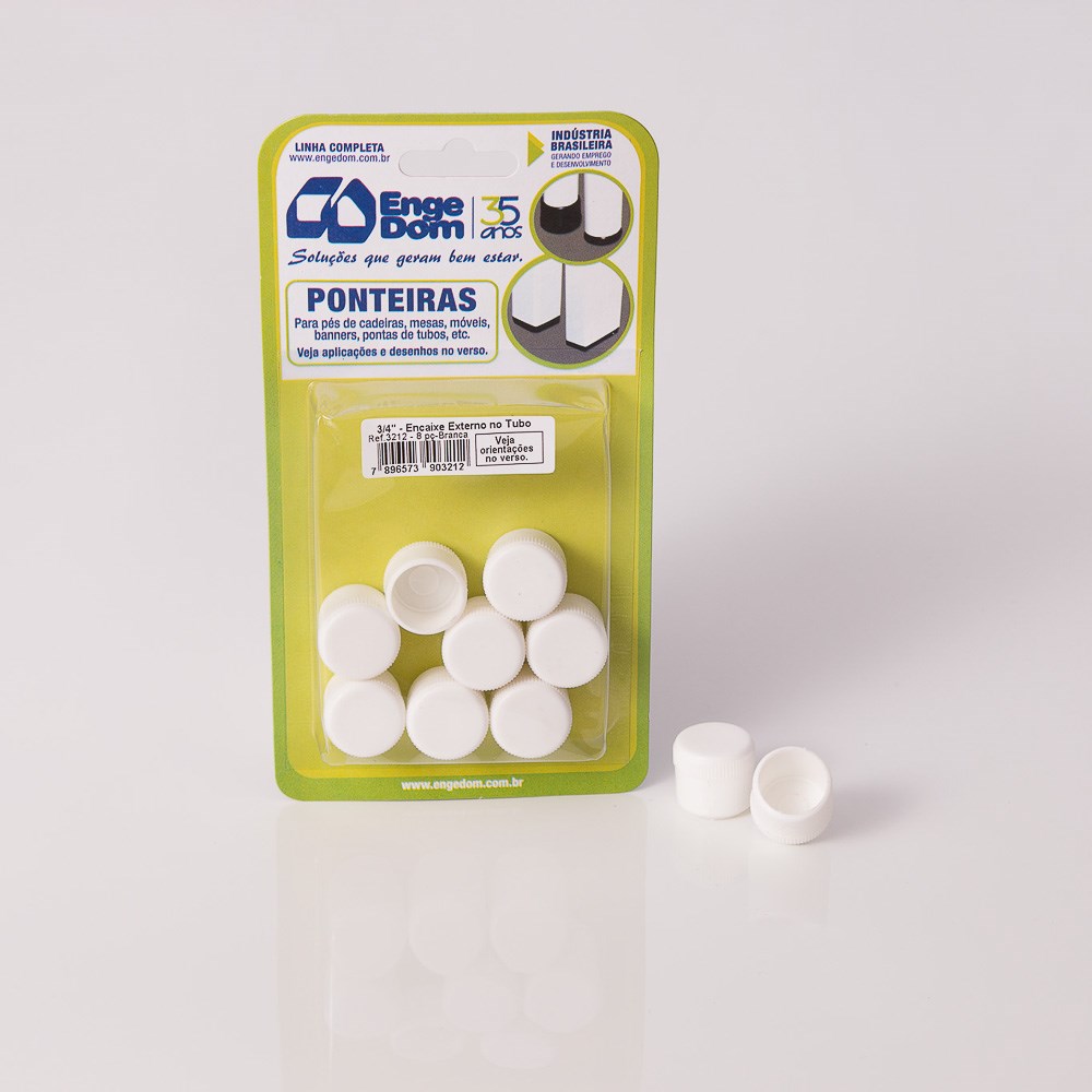 Ponteira Cadeira Engedom - "Pe" Externo Branca (C) 3/4" 8 Peças Redondo